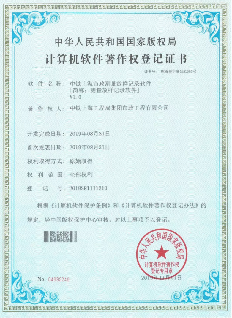 近日,從國(guó)家版權(quán)局傳來(lái)喜訊,公司技術(shù)創(chuàng)新工作又獲新突破!公司自主研發(fā)的“中鐵上海市政測(cè)量放樣記錄軟件”“中鐵上海市政基于ProStructures鋼筋計(jì)量軟件”通過(guò)中國(guó)版權(quán)保護(hù)中心審核,獲得國(guó)家版權(quán)局計(jì)算機(jī)軟件著作權(quán)授權(quán),并取得了著作權(quán)登記證書(shū)。...