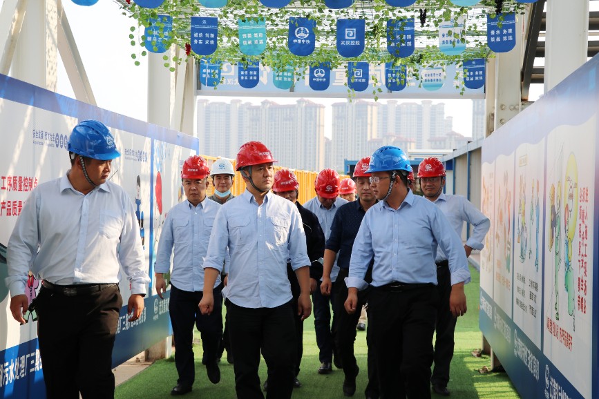 2020年10月10日下午,周強一行考察了項目各重點工程的建設情況,聽取項目負責人對工程進展的匯報。在項目安全體驗館,周強一行參觀了項目部安全文化長廊,并切身體驗了VR蛋椅等安全體驗設施,對項目部積極采取各種新舉措來提升項目安全文明施工水平表示充分肯定。