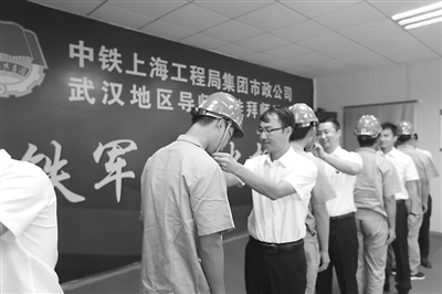 8月31日上午10時,在中鐵上海局市政公司武漢地鐵蔡甸線七標項目部“市政鐵軍 薪火相傳”拜師活動現場,13名新入職大學生與他們的專業指導師父和職業規劃導師共同簽訂師徒合同,正式拉開了工地“導師帶徒”推行雙導師制的序幕。拜師現場,師父還送給徒弟工地“文房四寶”——卷尺、鋼筆、計算器、學習計劃簿。劉鑫 李穎 苗武 攝