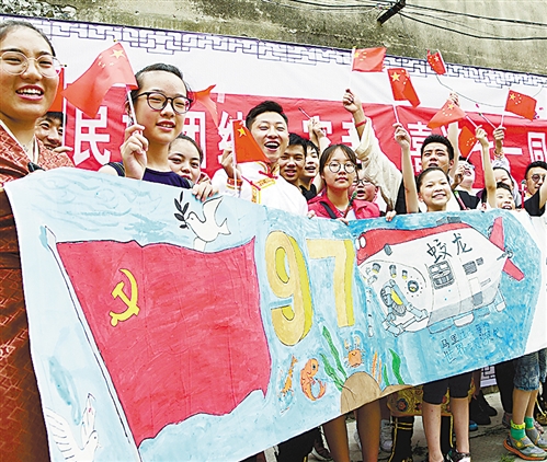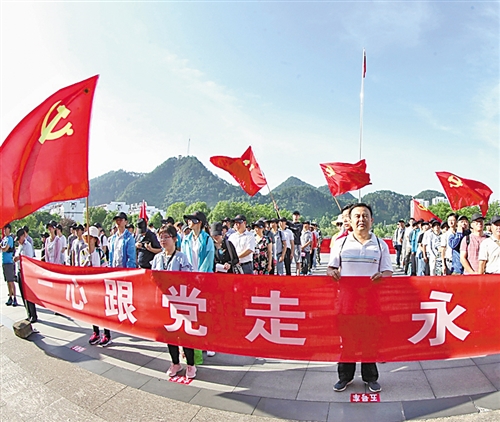 6月27日,安徽省歙縣舉辦“一心跟黨走 永遠在路上”活動迎接黨的生日。當日,200名縣直機關黨員和非公企業(yè)的黨員從縣城出發(fā),沿著革命先烈走過的足跡,到達溪頭鎮(zhèn)汪滿田村紅軍紀念碑。活動中舉辦升國旗、唱國歌儀式,沿途宣傳環(huán)保、扶貧、文明創(chuàng)建等內容。吳建平攝